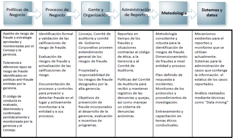 Entre los ejemplos comunes encontramos un código de conducta por escrito; programas de capacitación que abordan las expectativas de la gerencia y los valores corporativos; programas de incentivos; protocolos establecidos de autorización; y un Consejo de Administración independiente y proactivo y deseablemente un comité de auditoría, en resumen, un robusto Gobierno Corporativo