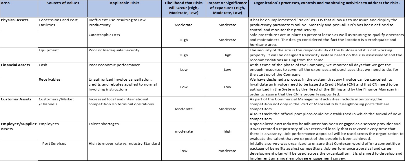 La evaluación de riesgo supone la identificación, análisis y manejo que hace la dirección de los riegos que pueden afectar la capacidad de la entidad para registrar, procesar, resumir y reportar la información financiera y que ésta concuerde con las afirmaciones de la dirección plasmadas en los estados financieros. Los cambios internos y externos afectan a los objetivos del negocio, por lo que los procesos de negocio deben ofrecer una evaluación continua del riesgo; entre las circunstancias que requieren de esta evaluación son las siguientes: