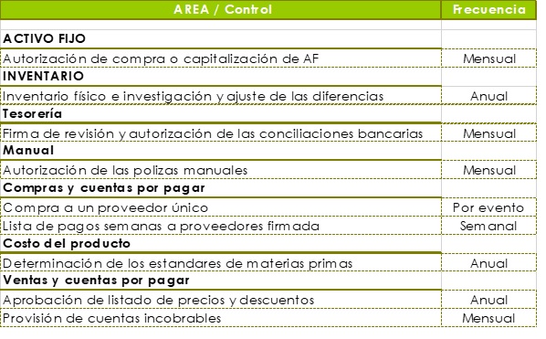 Ejemplos de Controles Clave