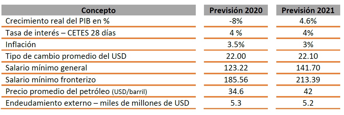 En septiembre de 2020 el Ejecutivo Federal por medio del Secretario de Hacienda y Crédito Público (SCHP), presentó la propuesta del Paquete Económico para el ejercicio 2021 conformado por los Criterios Generales de Política Económica, la Ley de Ingresos de la Federación (LIF), las reformas a las Leyes del Impuesto sobre la Renta (ISR), Impuesto al Valor Agregado (IVA), Impuesto Especial sobre Producción y Servicios (IEPS), el Código Fiscal de la Federación (CFF) y la Ley Federal de Derechos (LFD), así como el Presupuesto de Egresos de la Federación.